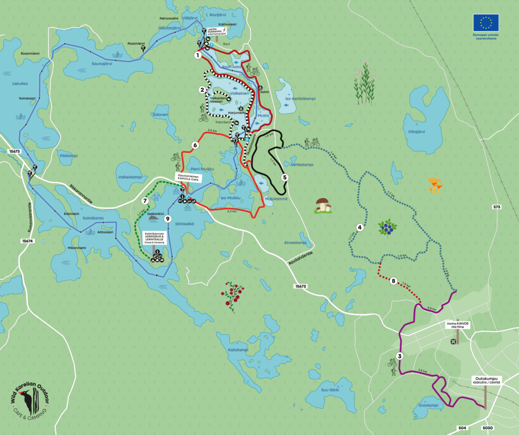 Melo, pyöräile ja ui tai vaella ja suppaile keskellä hienointa Pohjois-Karjalaa! Lähtöpaikka Kaunisniemen kahvila, osoite Rikkarannantie 37, 83500 Outokumpu. Kahvilalta